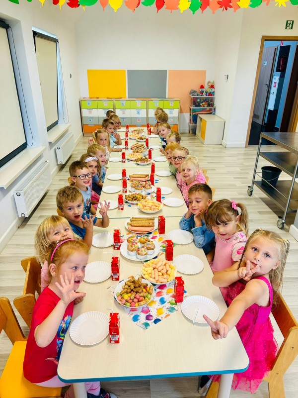 Po wspólnych harcach na wszystkich czekał słodki poczęstunek, który dodał energii do dalszej zabawy. Dzień upłynął w atmosferze radości, przyjaźni i dobrej zabawy czyli tak jak powinno być w przedszkolu!