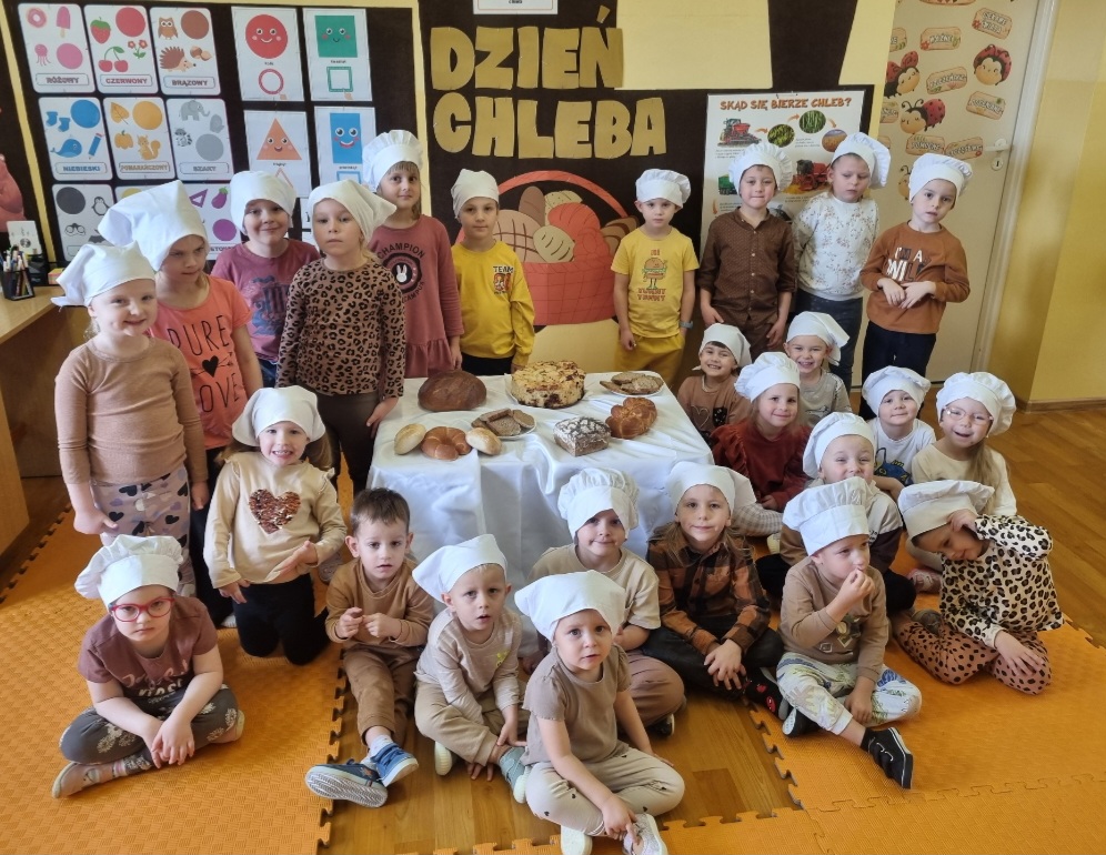 Dzień Chleba pozwolił dzieciom poznać różne rodzaje zbóż i własnoręcznie upiec bochenek chleba. Przedszkolaki obserwowały wyrabianie ciasta, pieczenie oraz degustowały wypieki, ucząc się szacunku do jedzenia i pracy ludzi.